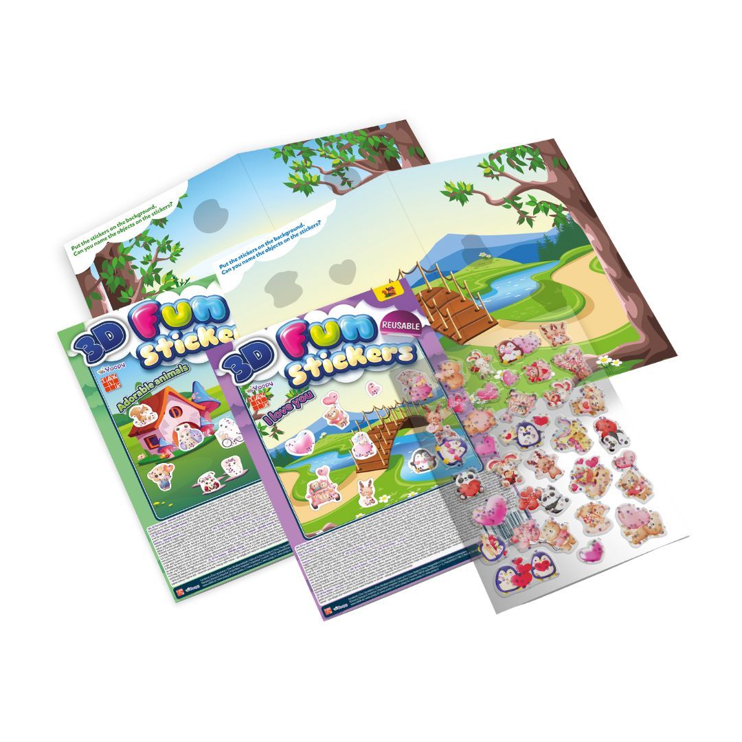 vsaka zbirka vsebuje desetine večkrat uporabnih 3D penastih nalepk in barvno dvostransko ozadje v formatu A3;