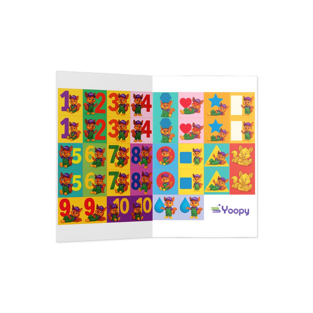 Spoznajte številke, barve in oblike z najslajšim vodnikom - veveričko Yoopy! Igra spomina, v katero se bodo otroci zaljubili.